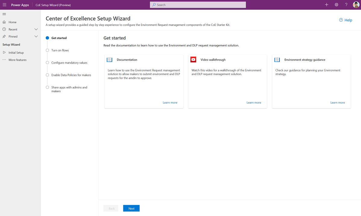 - Complete Before setting up the CoE Starter Kit and Set up inventory components.