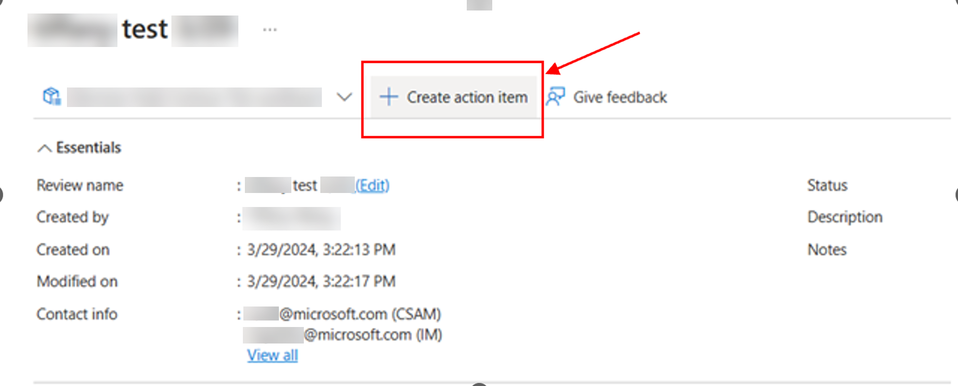 Select “Create action item” to create a new action item.