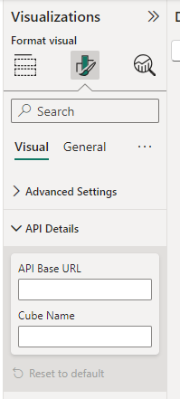 Optional: The following visuals require you to enter API Base URL (this is the Dataverse environment URL) and a Cube Name in the API Details section for the visual.