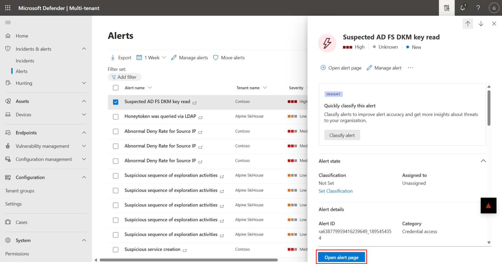 Go to the Alerts page in Microsoft Defender multitenant management.