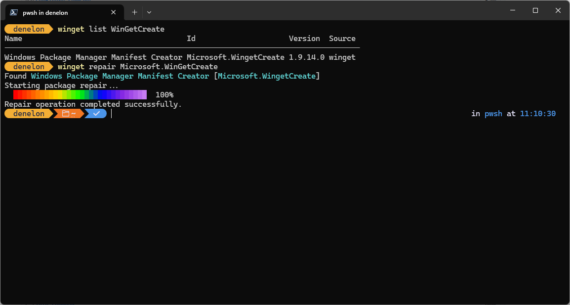 Use the list command to identify the application you want to repair. The repair command requires that you specify the exact string to repair. If there is any ambiguity, you will be prompted to further filter the repair command to an exact application.