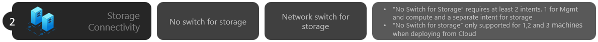 Questa opzione richiede un commutatore fisico per il traffico di archiviazione come le stesse porte vengono condivise con il traffico di calcolo, che richiede la comunicazione nord-sud. Se richiedi una configurazione senza interruttore, non puoi utilizzare questo tipo di intento. Il Portale di Azure filtra automaticamente questa opzione selezionando una configurazione senza switch per la connettività di archiviazione.