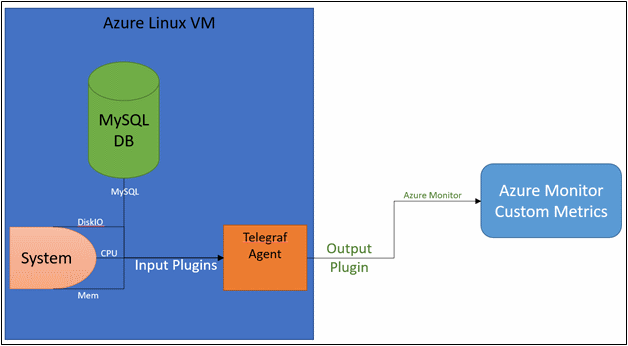 Telegraf è un agente basato su plug-in che consente la raccolta di metriche da oltre 150 origini diverse. A seconda dei carichi di lavoro eseguiti sulla macchina virtuale è possibile configurare l'agente per usare plug-in di input specializzati per raccogliere le metriche. Tra gli esempi vi sono Apache, MySQL e NGINX. Tramite i plug-in di output, l'agente può quindi scrivere nelle destinazioni scelte dall'utente. L'agente Telegraf si integra direttamente nell'API REST di metriche personalizzate di Monitoraggio di Azure. e supporta un plug-in di output di Monitoraggio di Azure. Usando questo plug-in, l'agente può raccogliere metriche specifiche del carico di lavoro nella VM Linux e inviarle come metriche personalizzate a Monitoraggio di Azure.