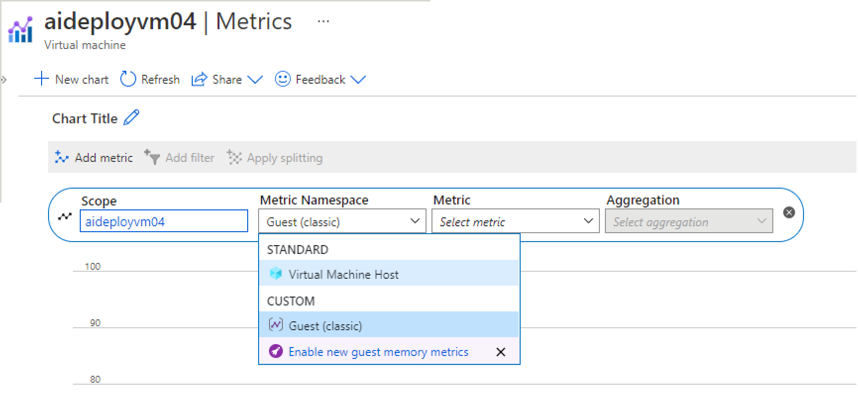 Soluzione: se lo spazio dei nomi Guest (versione classica) e le metriche in Esplora metriche non vengono visualizzati: