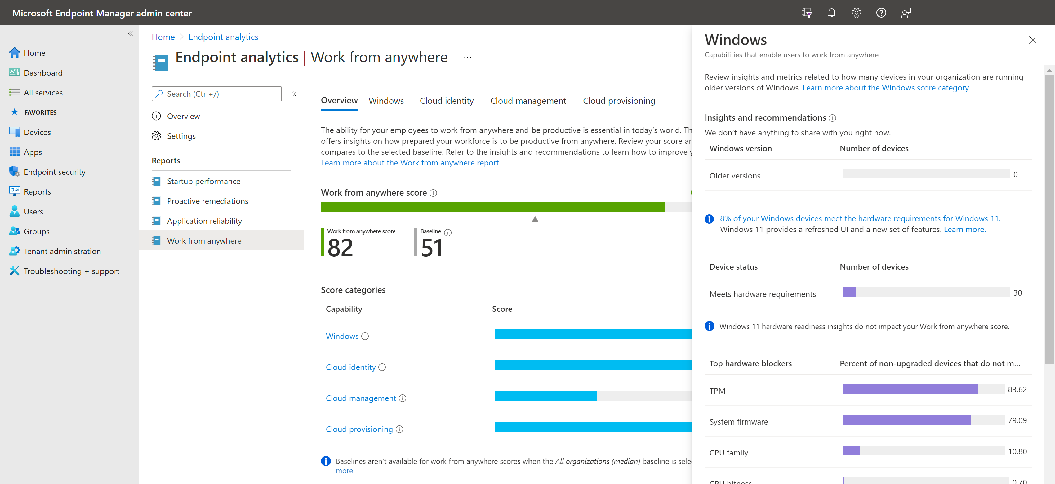 La capacità dei dipendenti di lavorare da qualsiasi luogo in modo produttivo è essenziale nel mondo di oggi. Questo report offre informazioni dettagliate sulla preparazione della forza lavoro per la produttività da qualsiasi luogo. Da questo report è possibile esaminare i punteggi e il modo in cui vengono confrontati con la baseline selezionata. Informazioni su come migliorare i punteggi esaminando le informazioni dettagliate e le raccomandazioni per ognuno di essi.