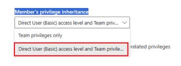 Selezionare l'elenco a discesa per impostare il "livello di accesso diretto (Basic) e i privilegi del team" per l'ereditazione dei privilegi del membro come illustrato nello screenshot seguente.