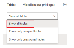 Selezionare l'elenco a discesa per "Mostra tutte le tabelle" nella scheda tabelle, come illustrato nello screenshot seguente.