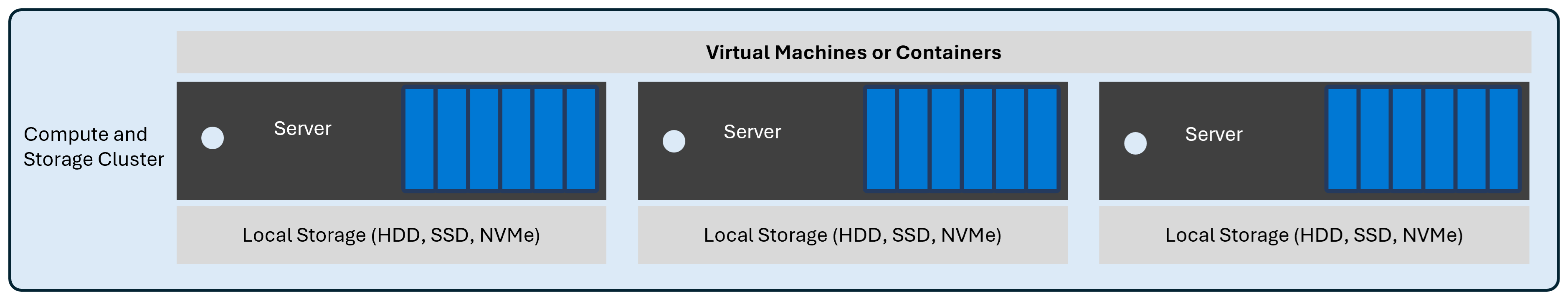 In questo modello ogni host fisico contiene risorse di archiviazione e calcolo. Di conseguenza, tali risorse fisiche si scalano in modo simmetrico. Ogni nuovo host aggiunge automaticamente sia risorse di calcolo che di archiviazione. Ogni cluster può contenere tra 1 e 16 nodi.