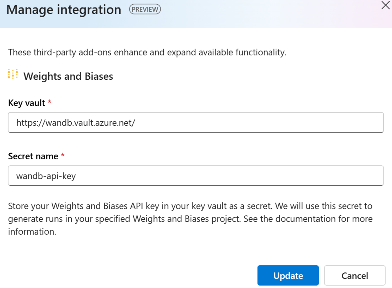Azure OpenAI から Weights & Biases プロジェクトに安全にデータを送信するには、Azure Key Vault を使用する必要があります。
