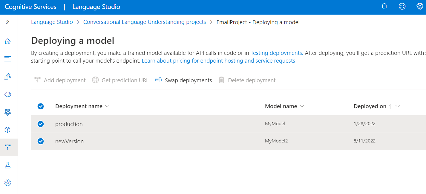 - Language Studio の [モデルのデプロイ] ページに移動します。