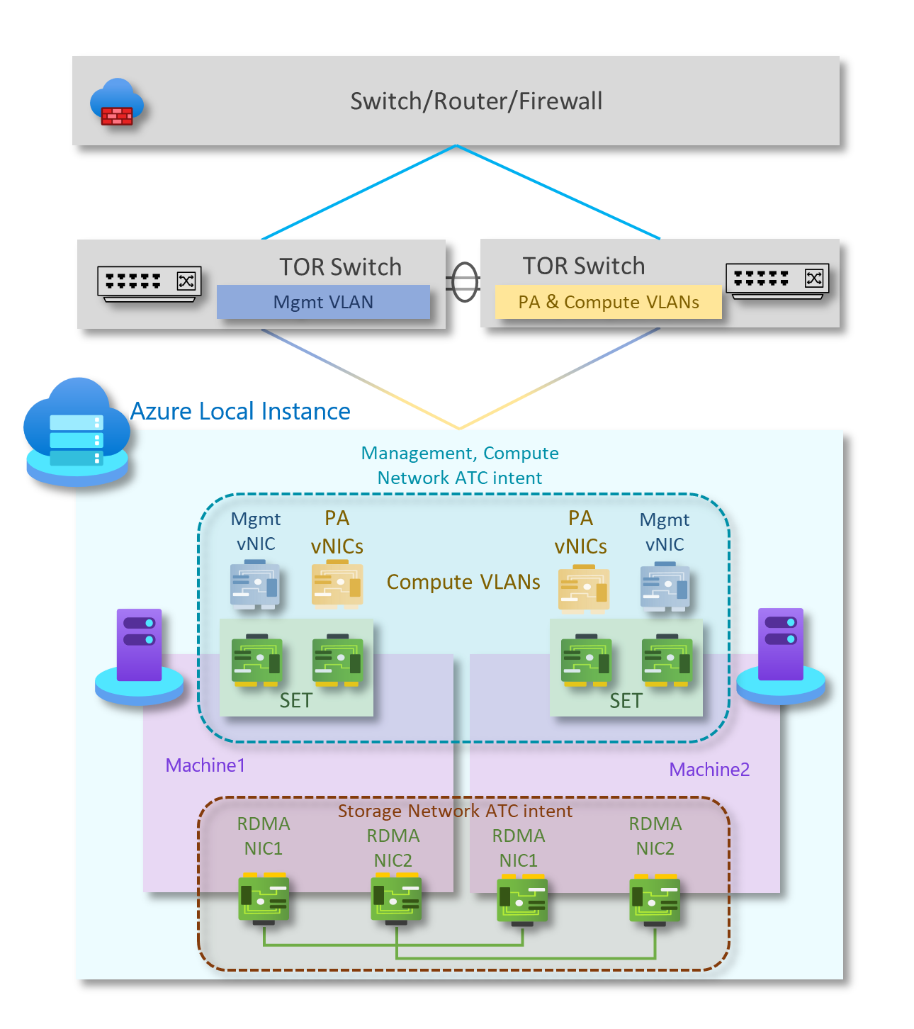 その他のネットワーク パターンについては、「 Azure ローカル ネットワーク展開パターンを参照してください。