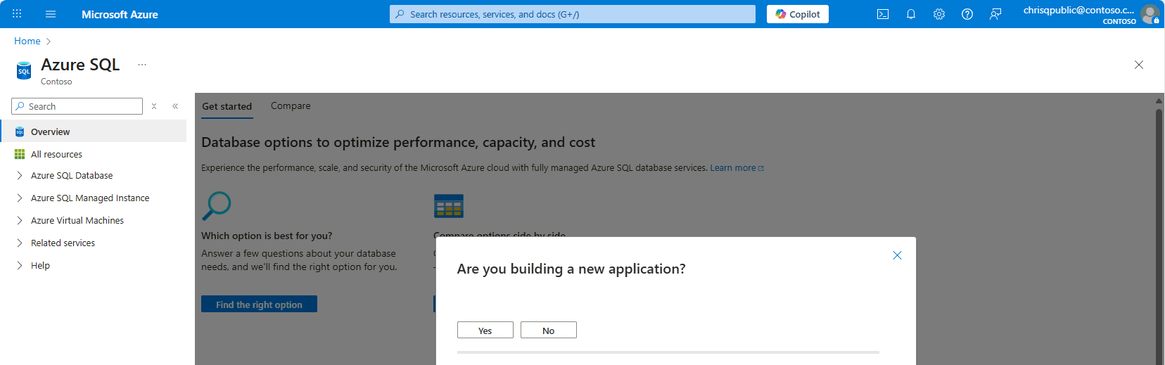 Azure SQL ハブには、 適切なオプションの検索 と オプションの比較 に関する情報ヘルパーが含まれています。