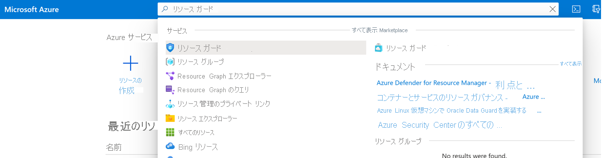 検索バーで Resource Guard を検索し、次にドロップダウン リストから対応する項目を選択します。