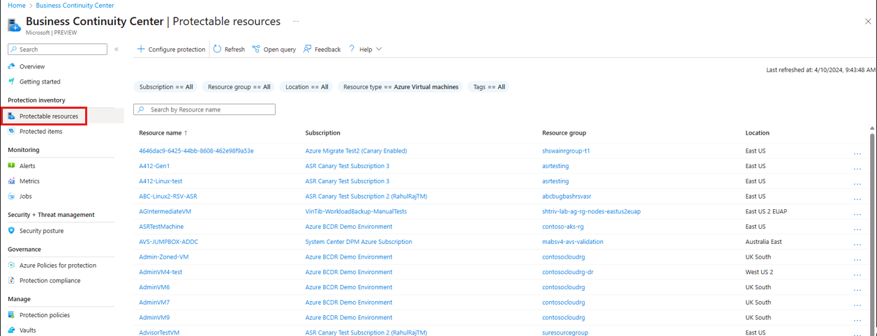 このチュートリアルでは、Azure ビジネス継続性 (ABC) センターを使用して、現時点でどのソリューションでも保護されていないリソースを表示する方法について説明します。