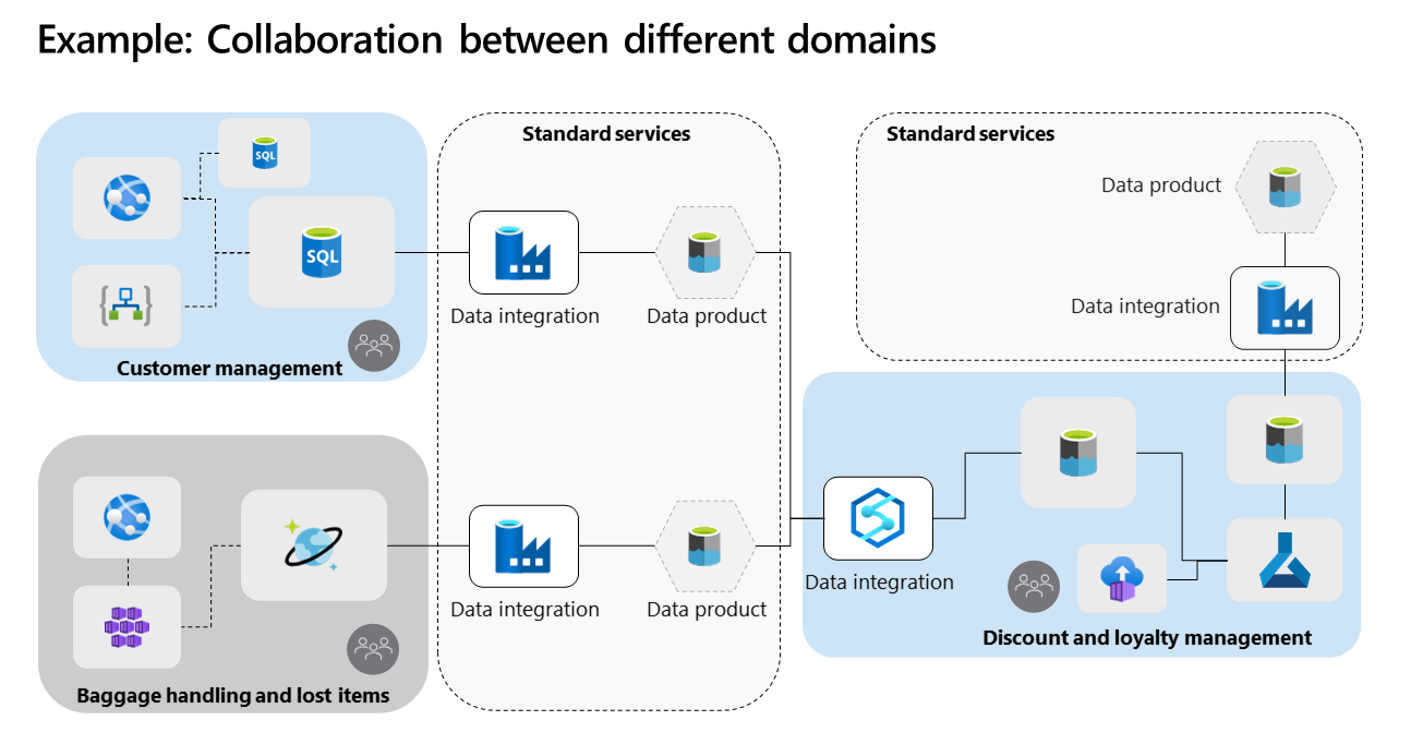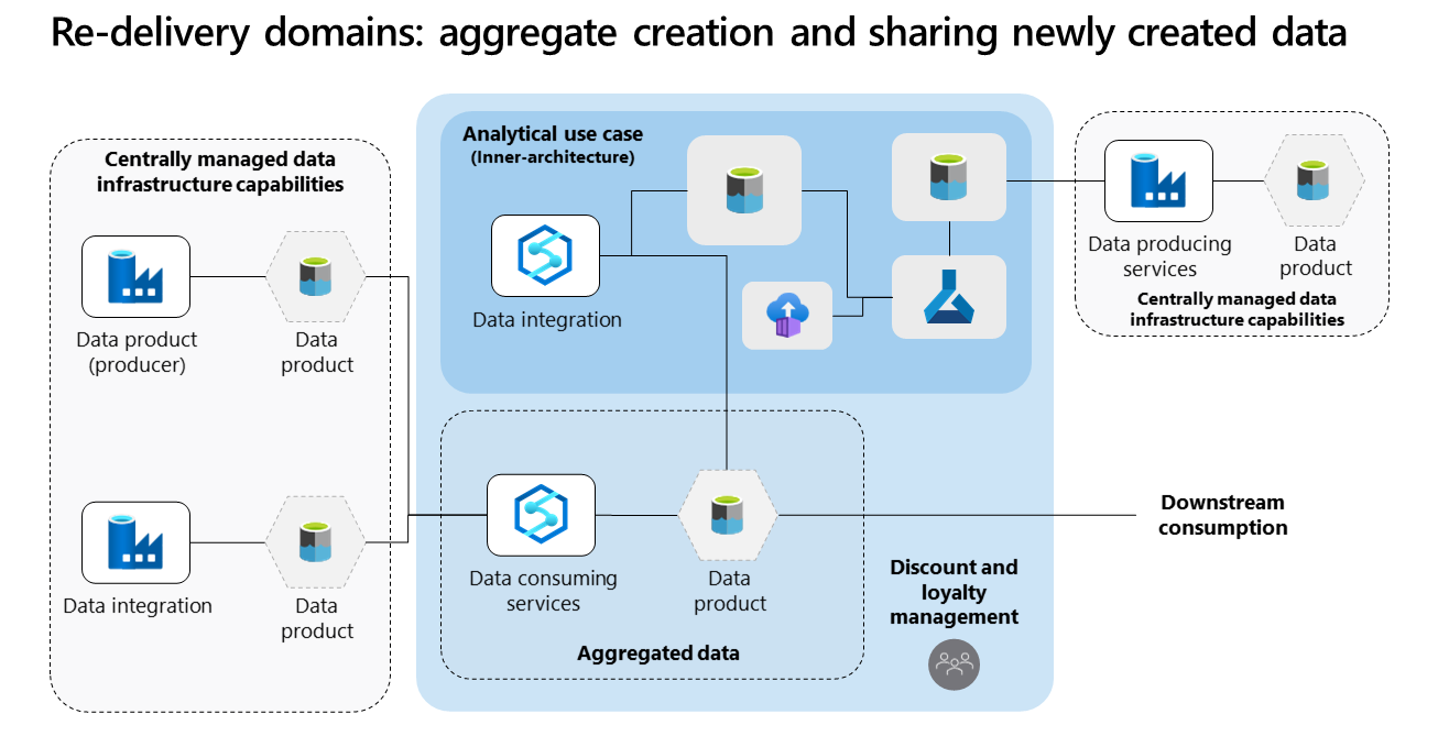データの再利用性は、異なる、より困難なシナリオです。 たとえば、ダウンストリーム コンシューマーが異なるドメインのデータの組み合わせに関心がある場合は、データを集計するデータ製品を作成したり、多くのドメインで必要な高レベルのデータを組み合わせたりすることができます。 これにより、繰り返し作業を回避できます。