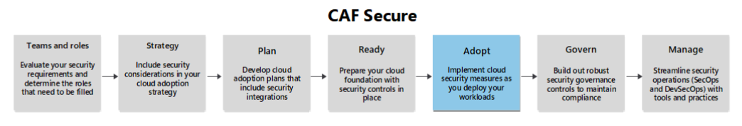 この記事は、 Adopt 手法のサポート ガイドです。 移行の段階において考慮すべきセキュリティ最適化の領域が示されています。