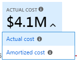 既定では、コスト分析には発生して請求書に記載予定のすべての使用および購入のコストが表示されます (実際のコストとも呼ばれます)。 実際コストを表示することは、請求書を調整するために最適です。 ただし、支出の異常やその他のコスト変化を監視している場合、購入コストの急増は警告を示す可能性があります。 予約購入コストが原因の急増を平坦化するには、償却コストに切り替えます。
