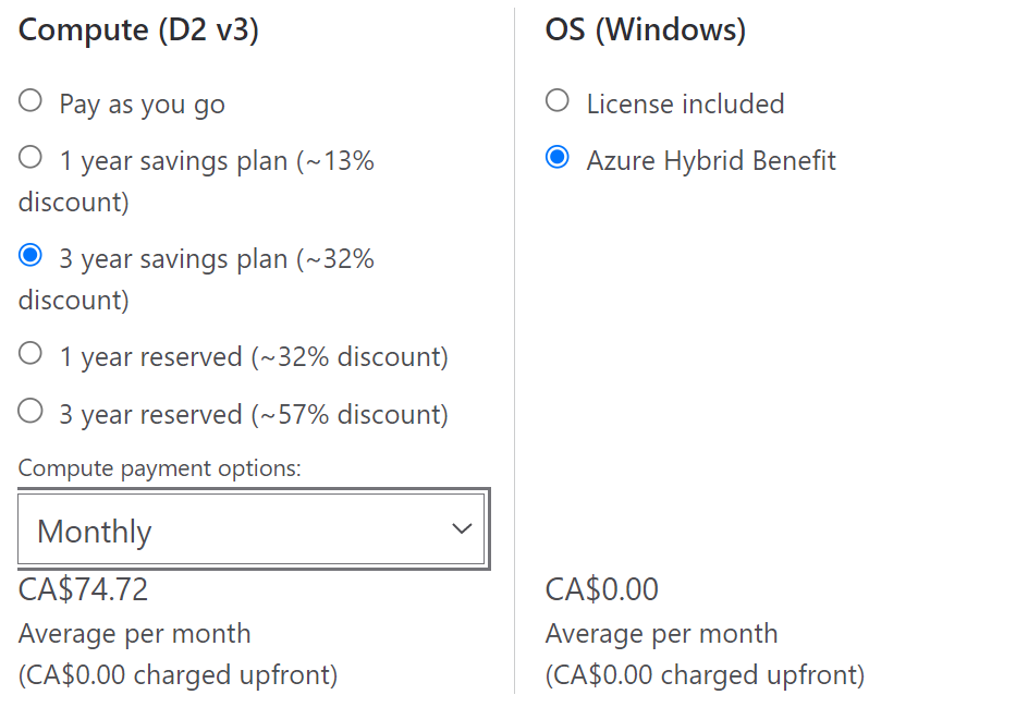 - 節約プランの期間とオペレーティング システム (必要な場合) を選択します。