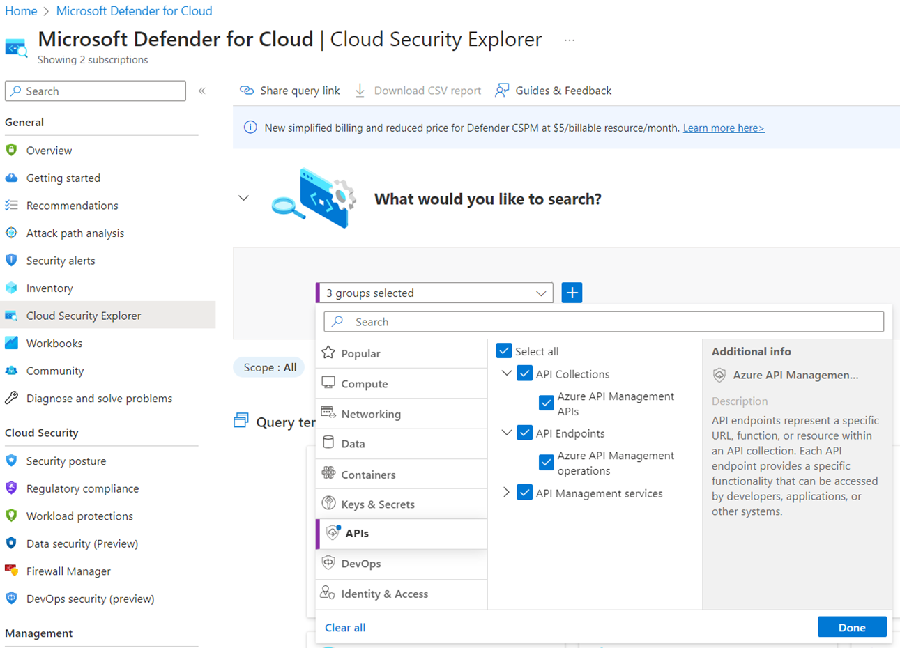 クラウド セキュリティ エクスプローラーを使用して API のクエリを実行する