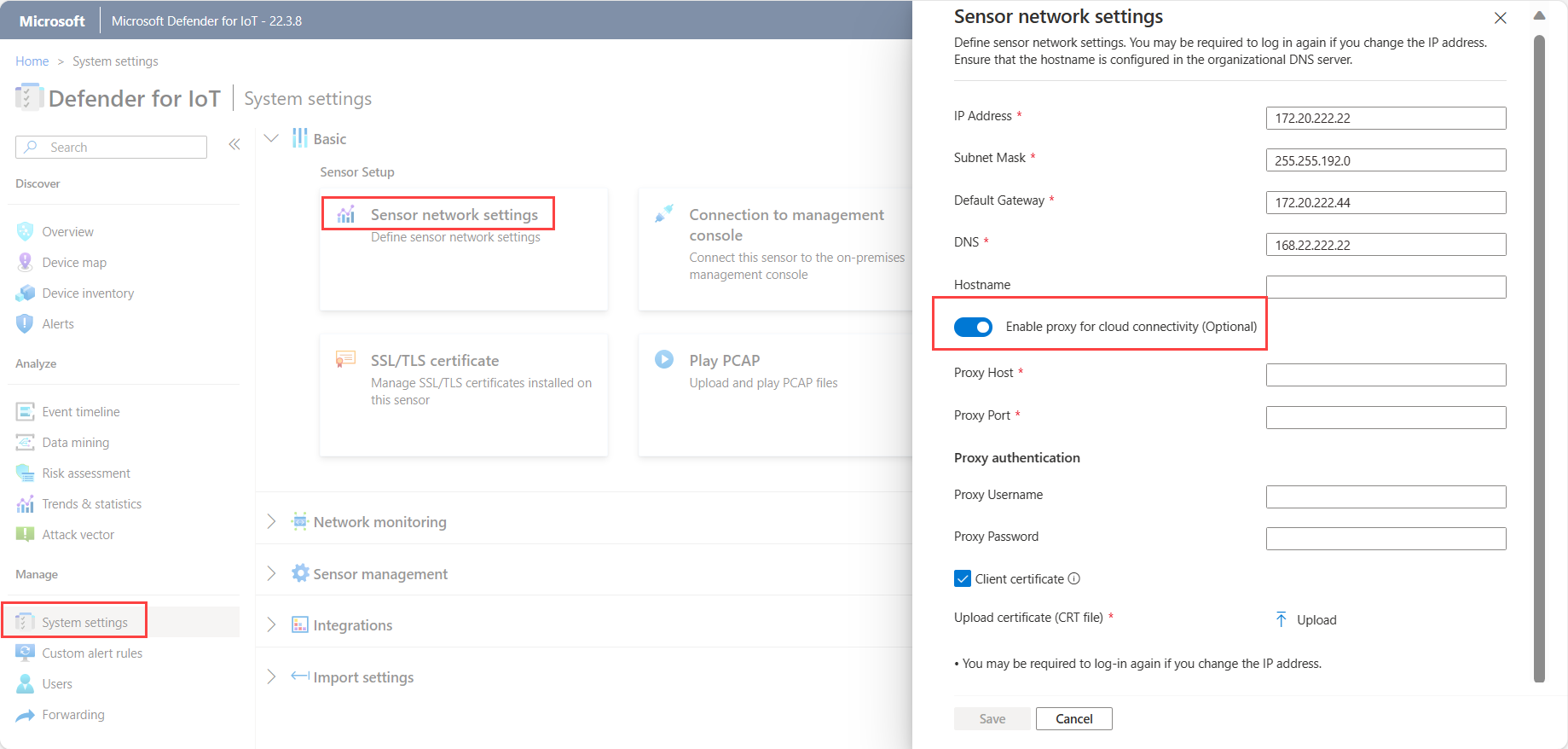 VPC と VNET を構成したら、OT センサーでプロキシ設定を定義します。