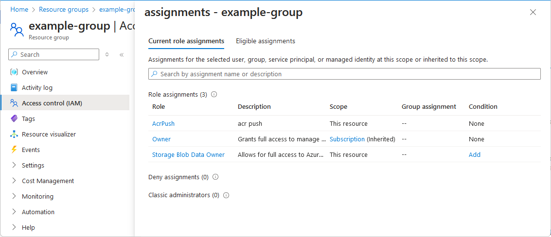 次の手順に従って、前に選択した Azure リソースに対する自分のアクセス権を確認します。