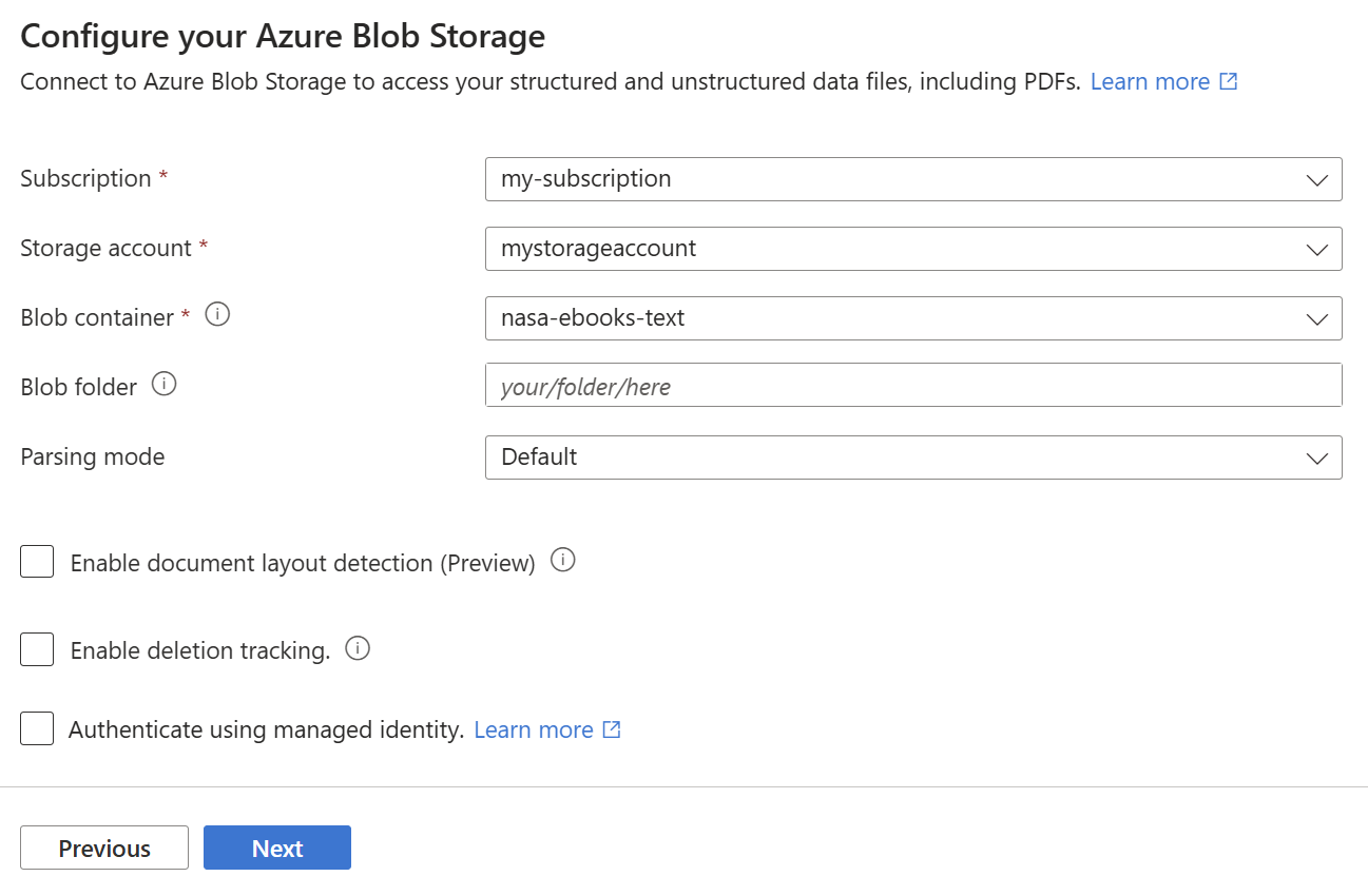 データのインポート (新しい) ウィザードは、Azure Blob Storage からファイルを読み取り、チャンクされたフィールドとベクター化されたフィールドを含むインデックスを作成し、ベクター化機能を追加します。 設計上、ウィザードによって作成されたベクトライザーは、BLOB コンテンツのインデックス作成に使用されるものと同じ埋め込みモデルに設定されます。