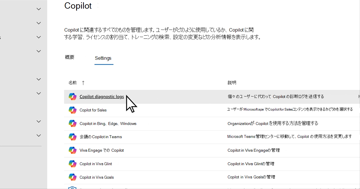 [Copilot 診断ログ] を見つけて選択し、Copilot フィードバック診断ログ ウィンドウを開きます。 情報を確認して、[開始する] を選択します。
