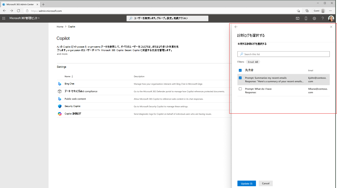 Microsoft 365 Copilotで問題が発生したユーザーのメール アドレス。