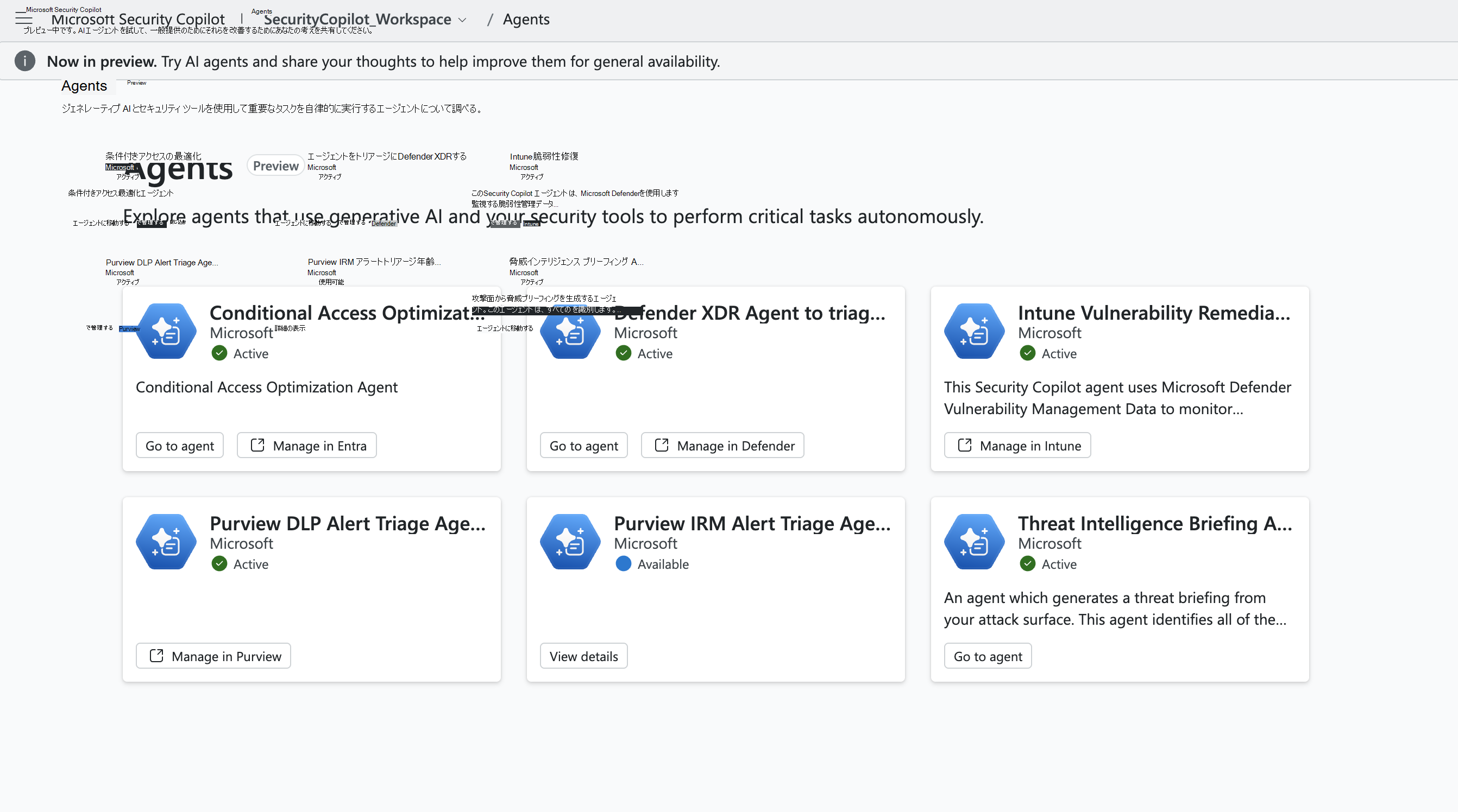 スタンドアロンエクスペリエンスと埋め込みエクスペリエンスの両方からMicrosoft Security Copilotエージェントを簡単に検出できます。 スタンドアロン エクスペリエンスから、バナーから [ エージェントに移動 ] を選択できます。