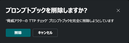 [削除] を選択して、選択したプロンプトブックの完全な削除を確定します。