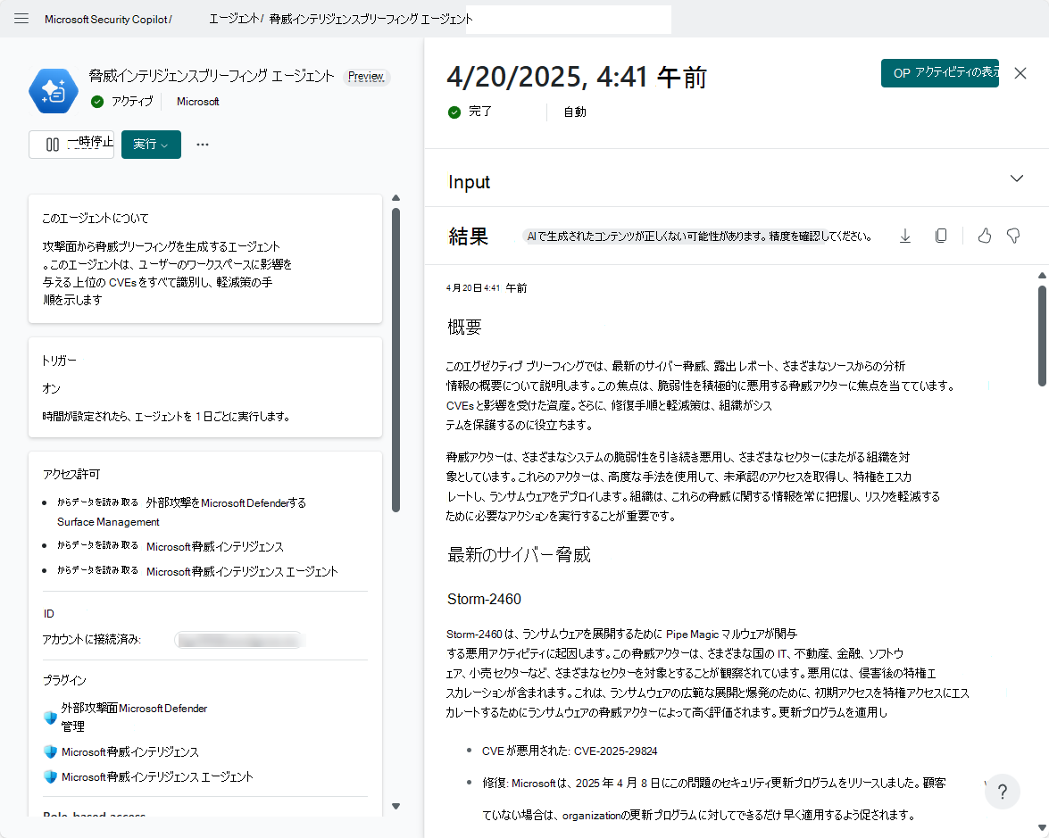 このエージェントを実行するには、Microsoft Security Copilotが必要です。