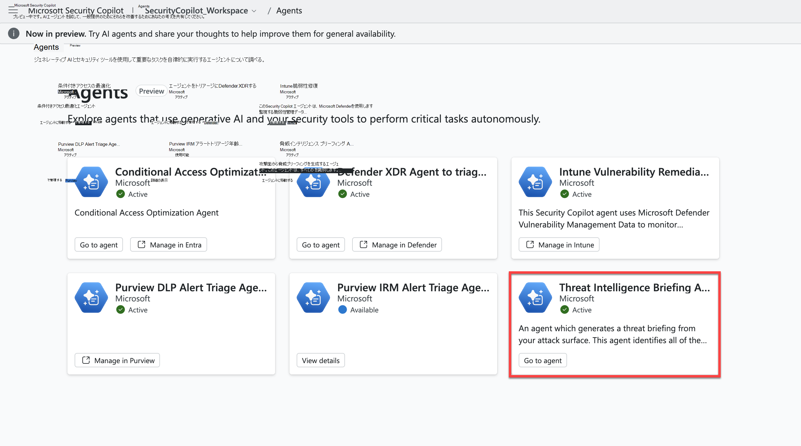 - 所有者と共同作成者は、Microsoft Security Copilot エージェント ライブラリ ページ内の脅威インテリジェンスブリーフィング エージェントによって生成されたレポートを確認できます