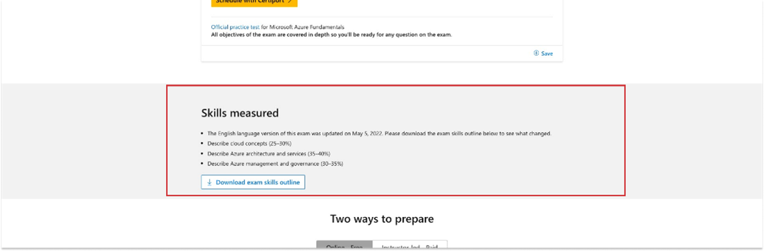MeasureUp によって提供されるプラクティス テスト: 一部の試験には、試験の準備に役立つように MeasureUp を通じて提供されるプラクティス テストがあります。 利用可能な場合は、認定資格の詳細ページにリンクが表示されます。