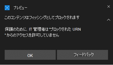 エッジ以外のブラウザーについては、「 Defender CSP: 構成/EnableConvertWarnToBlock」を参照してください。 Edge ブラウザーについては、「 Edge Policy: Prevent SmartScreen Prompt Override」を参照してください。
