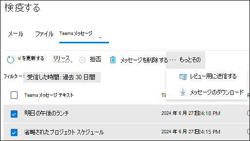 検疫された複数の Teams メッセージに対してアクションを実行する