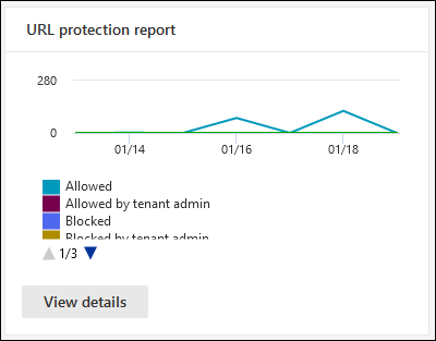 https://security.microsoft.com/emailandcollabreportの [Email & コラボレーション レポート] ページで、URL 保護レポートを見つけて、[詳細の表示] を選択します。 または、レポートに直接移動するには、 https://security.microsoft.com/URLProtectionActionReportを使用します。