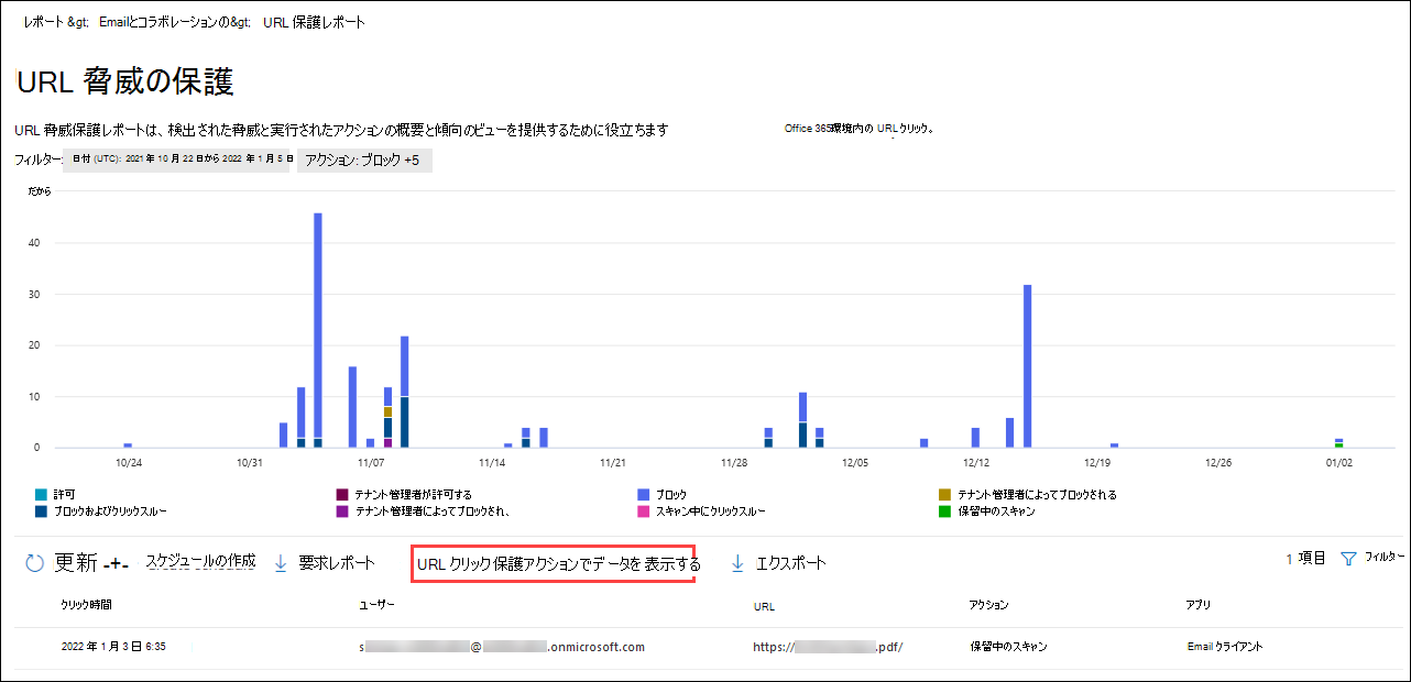 URL 保護レポートで URL クリック保護アクションでデータを表示する