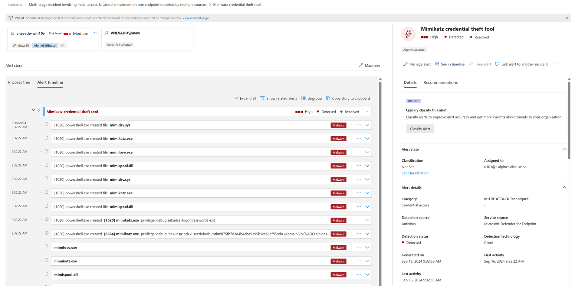 インシデント内では、アラートを分析し、その意味を理解し、証拠を照合して、効果的な修復計画を立てることができるようにします。