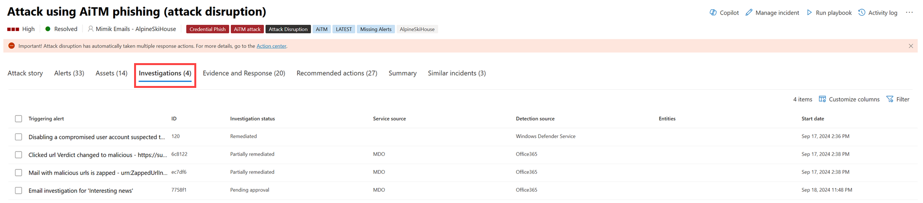 詳細については、「Microsoft Defender XDRでの自動調査と対応」を参照してください。