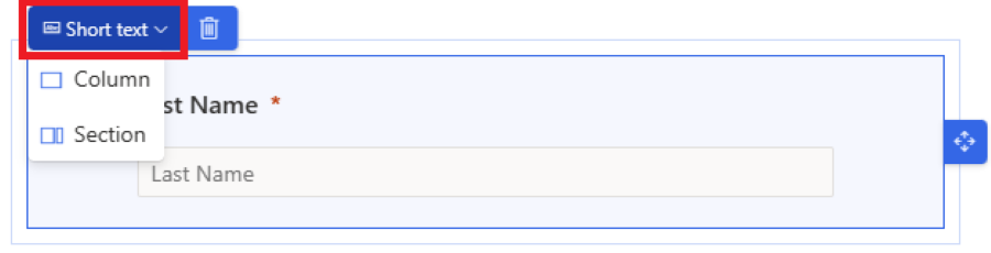 - ゴミ箱アイコンを選択すると、フォームからフィールドを削除できます。