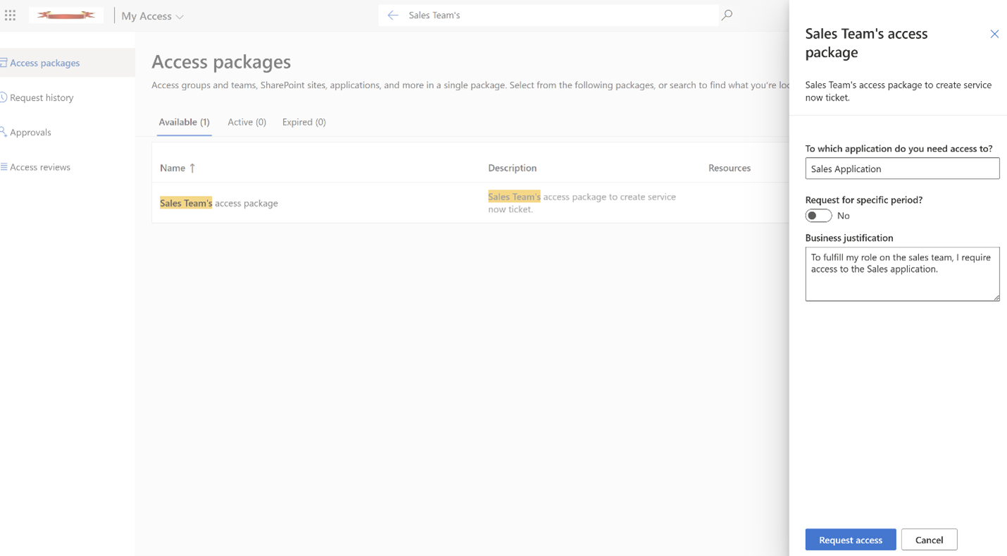 アクセス パッケージへのアクセスをエンド ユーザーとして要求する