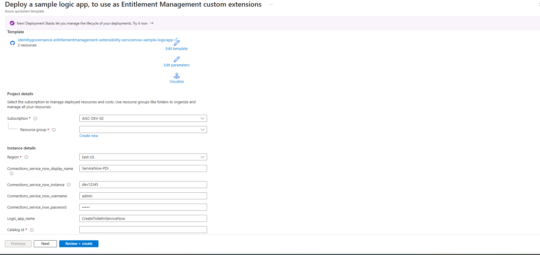 ロジック アプリ ワークフローを既存のカタログに追加するには、ここでロジック アプリを作成するための ARM テンプレートを使用します。