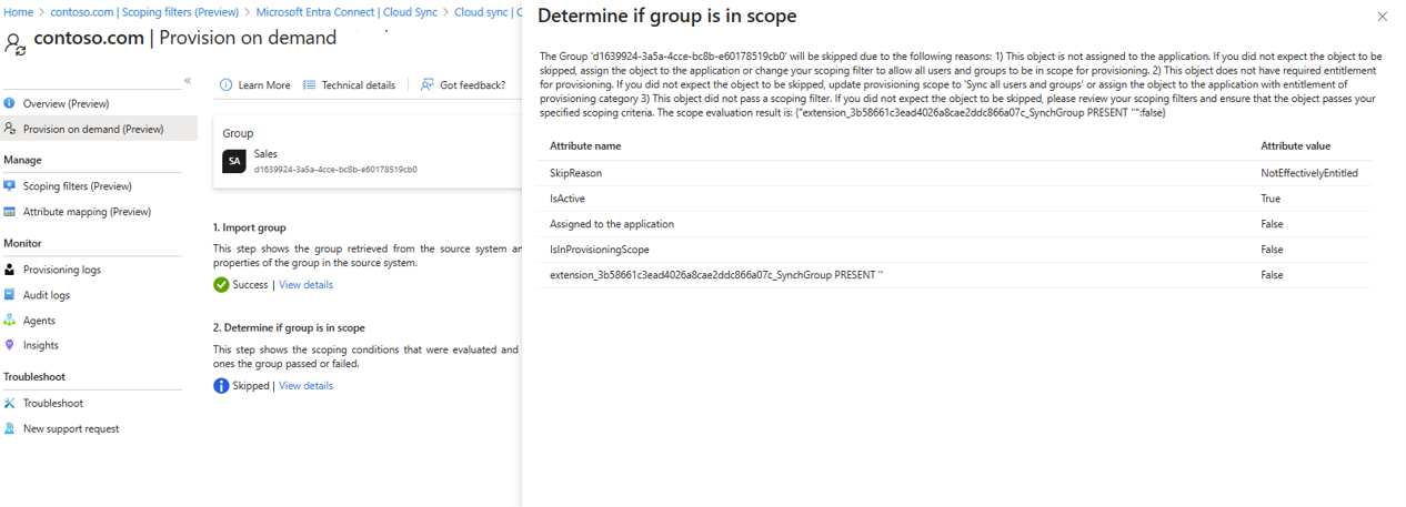 - 次に 、Sales グループを試して、 Britta Simon と Anna Ringdahl を追加します。 この場合、プロビジョニングされないはずです。