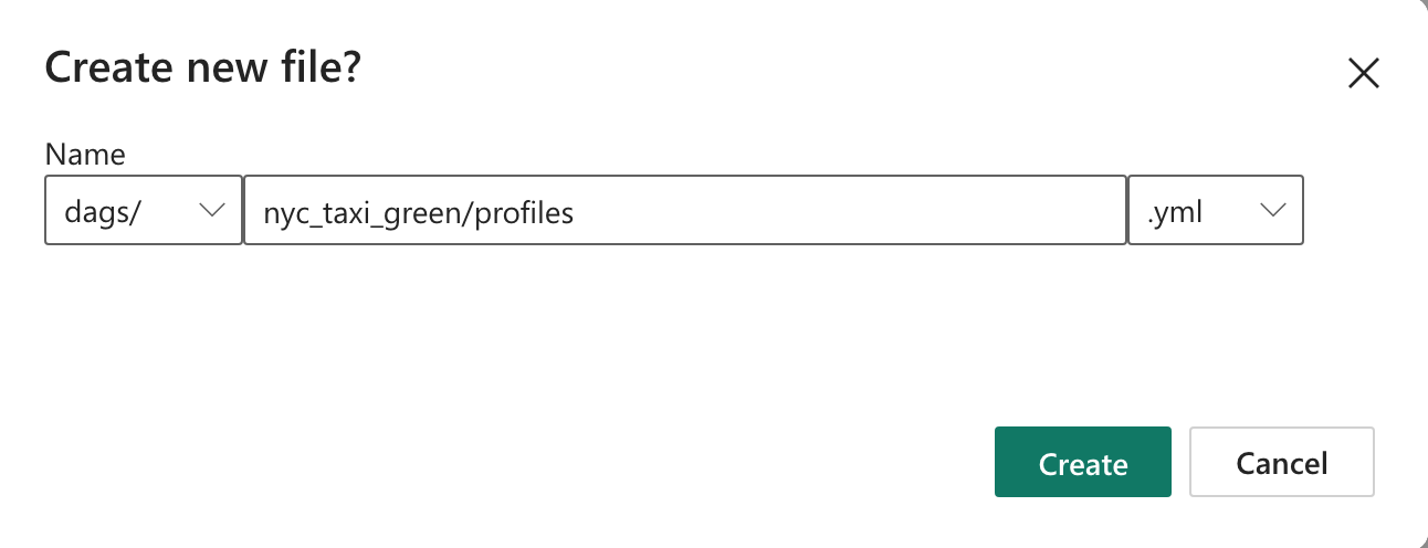my_cosmos_dag.pyフォルダーにdagsという名前のファイルを作成し、次の内容を貼り付けます。import os from pathlib import Path from datetime import datetime from cosmos import DbtDag, ProjectConfig, ProfileConfig, ExecutionConfig from airflow import DAG DEFAULT_DBT_ROOT_PATH = Path(__file__).parent.parent / "dags" / "nyc_taxi_green" DBT_ROOT_PATH = Path(os.getenv("DBT_ROOT_PATH", DEFAULT_DBT_ROOT_PATH)) profile_config = ProfileConfig( profile_name="nyc_taxi_green", target_name="fabric-dev", profiles_yml_filepath=DBT_ROOT_PATH / "profiles.yml", ) dbt_fabric_dag = DbtDag( project_config=ProjectConfig(DBT_ROOT_PATH,), operator_args={"install_deps": True}, profile_config=profile_config, schedule_interval="@daily", start_date=datetime(2023, 9, 10), catchup=False, dag_id="dbt_fabric_dag", )