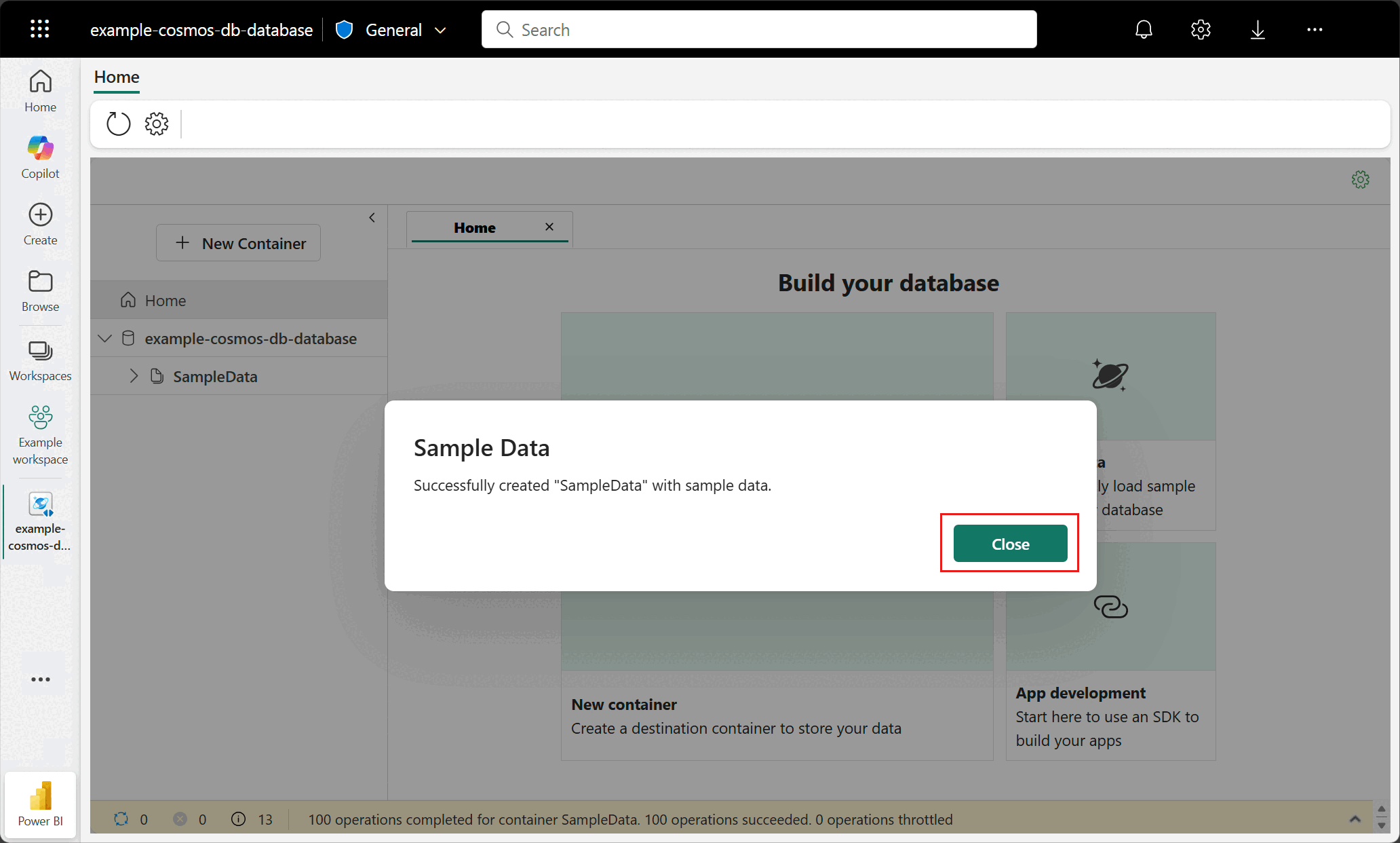 最後に、NoSQL クエリを実行して、作成された SampleData コンテナー内のサンプル データをテストします。