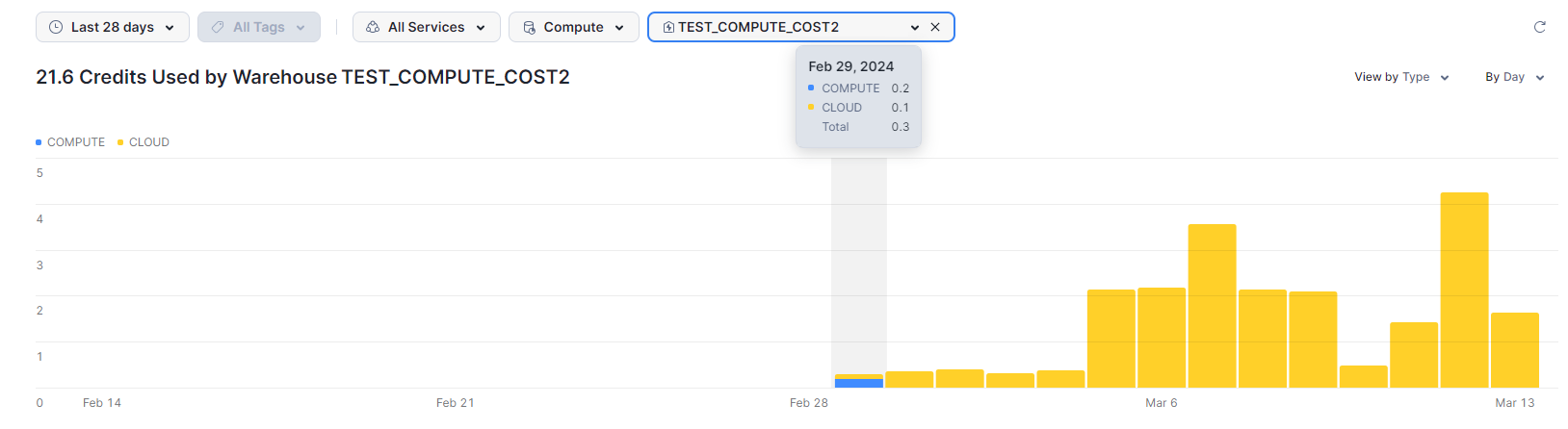 などのデータを生成するクエリは Snowflake ウェアハウスを起動し、コンピューティングは課金されます。