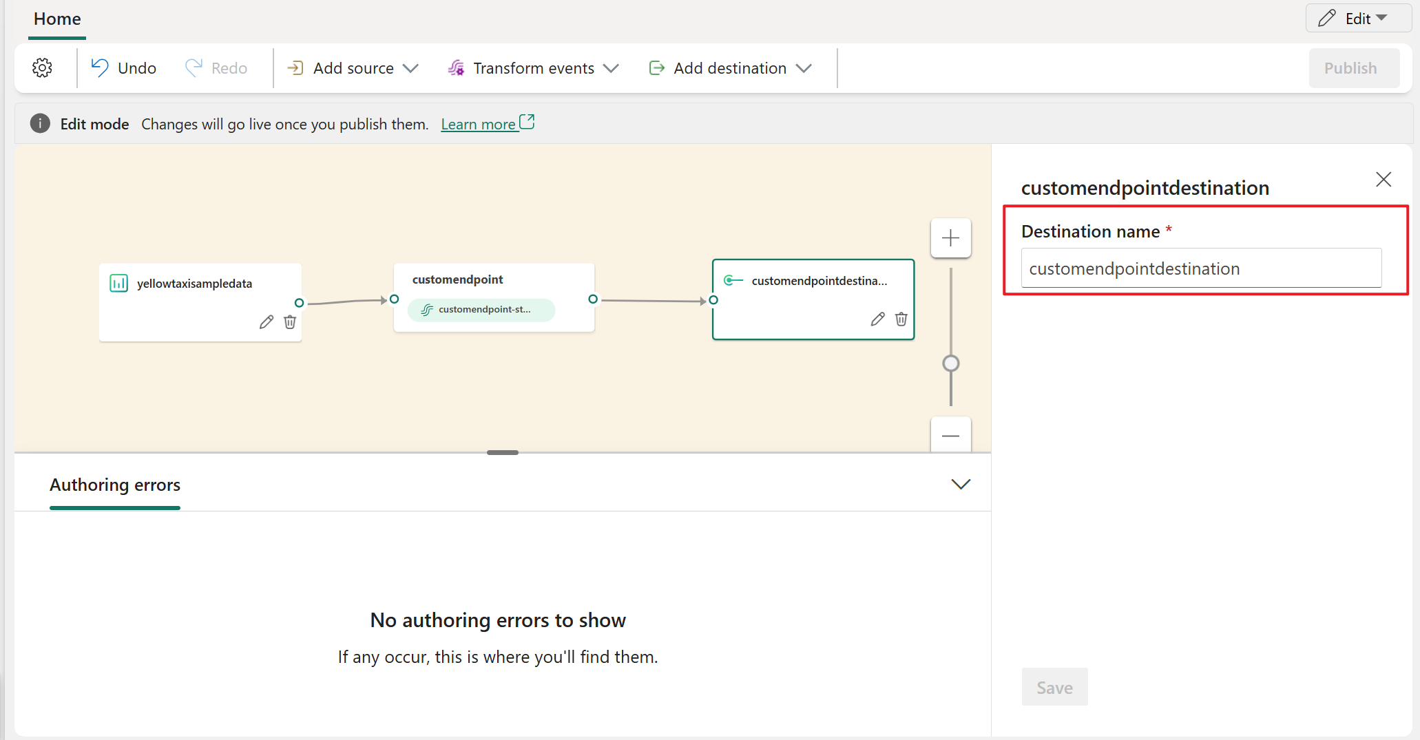 - イベントストリームを編集してカスタム エンドポイントの宛先を追加するには、共同作成者以上のアクセス許可が必要です。