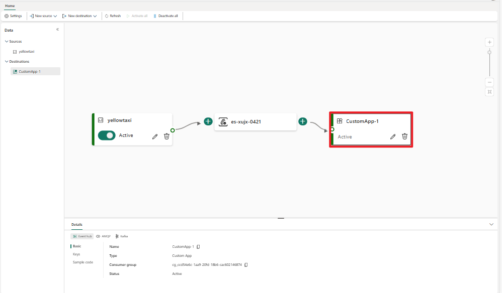 イベント データをアプリケーションにルートする場合は、eventstream の転送先としてカスタム アプリを追加できます。
