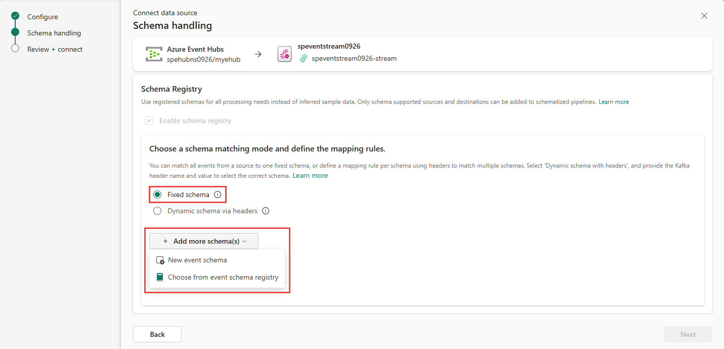すべてのイベントを管理するスキーマが 1 つある場合は、 固定スキーマを選択します。