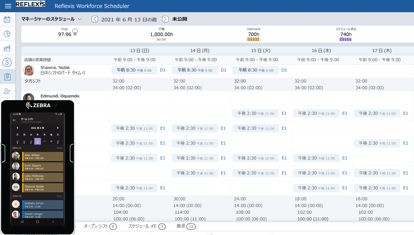 - Reflectionis WFM と Shifts の両方で、作業者からのスケジュール要求を表示および承認します。